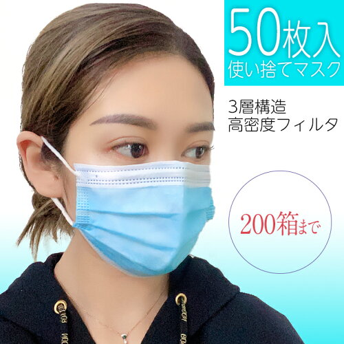 【2箱で送料無料 4月22日〜24日頃発送】マスク 50枚 使い捨て 普通サイズ 大人 ブルー 不織布 花粉症対策 マスク mask 男女兼用 レギュラーサイズ 3層構造 PM2.5 立体マスク 防護 花粉 風邪予防 在庫あり 200箱限定 不織布マスク 転売品ではない 【メール便不可】